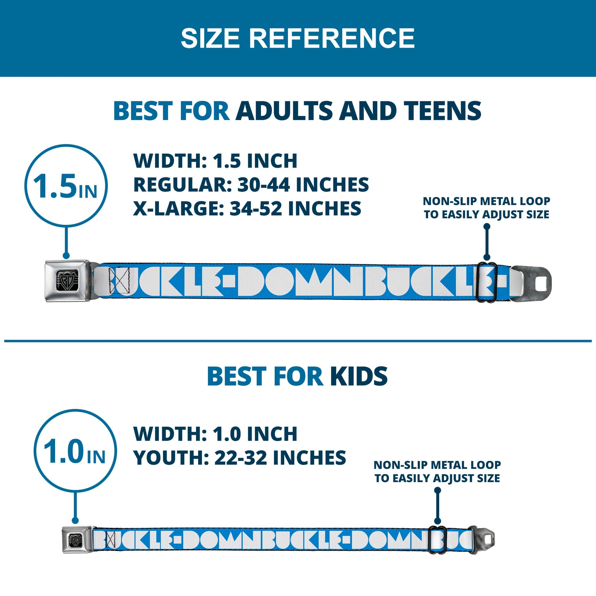 Buckle-Down's iconic Seatbelt Belt is a cool, smart, and exciting blend of fashion and function. Always a conversation starter, our Seatbelt Belt adjusts to perfectly fit your waist while showcasing your unique sense of style. Our Seatbelt Belts are made with authentic automotive style seatbelt buckles making them easy to open and close at the push of a button. Our adult-size Seatbelt Belts are 1.5 inches wide and our kid-sized Seatbelt belts are 1.0 inch wide. This product is Handcrafted in USA by Buckle-Down Inc. and officially licensed by Buckle-Down.