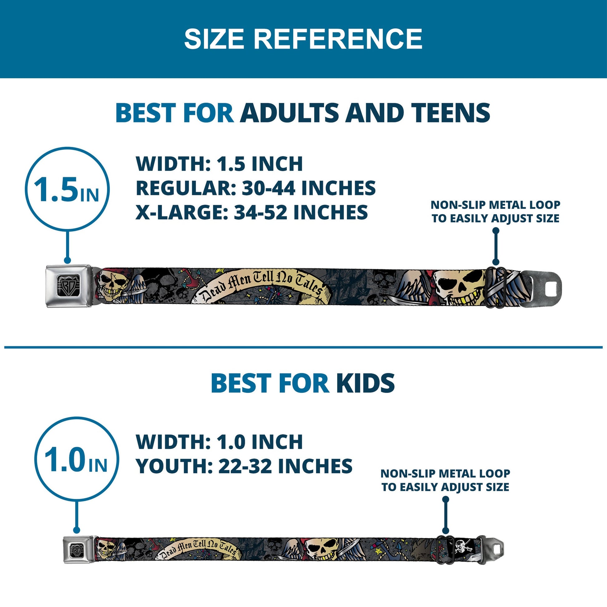 BD Wings Logo CLOSE-UP Full Color Black Silver Seatbelt Belt - Dead Men Tell No Tales Gray Webbing
