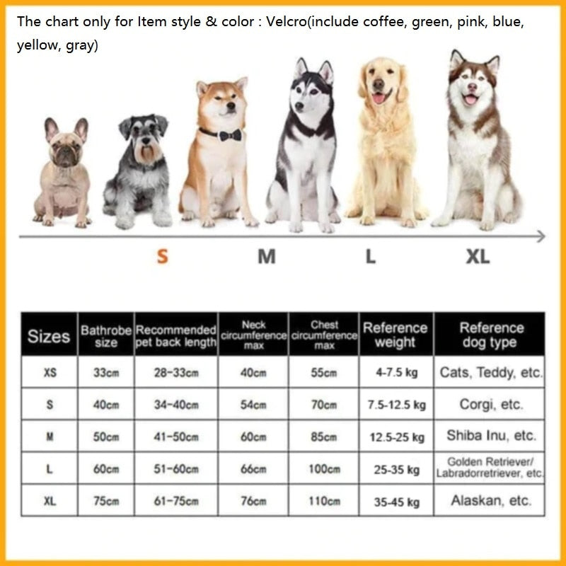 Introducing the Super Absorbent Pet Bathrobe, a must-have accessory for your furry friend's post-bath routine. This soft and adjustable dog bathrobe towel is designed to provide maximum comfort and efficient drying for your pet. Made from high-quality materials, this bathrobe offers excellent absorbency, quickly soaking up excess moisture from your pet's coat. Say goodbye to wet and soggy towels and hello to a hassle-free drying experience. The adjustable design ensures a snug and comfortable fit for dogs of various sizes, from Teddy and Alaskan breeds to cats and other small pets. The bathrobe's soft fabric gently wraps around your pet, allowing them to relax and dry off in style.
